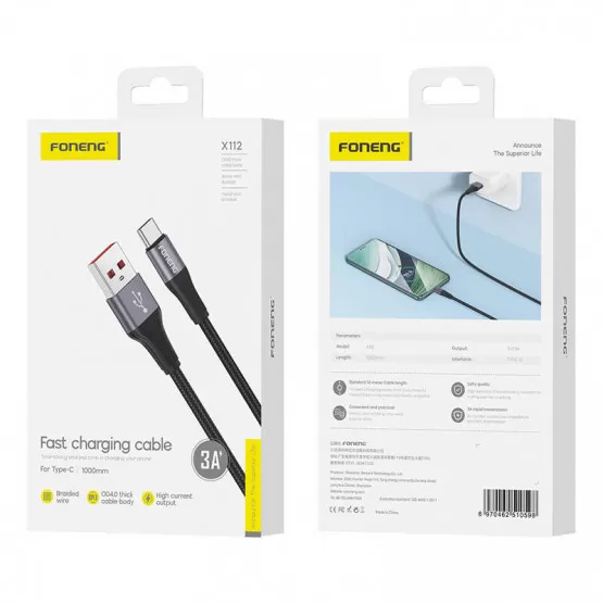 Item Code: FONENG FAST CHARGING CABLE 2.4A 1000MM TYPE-C