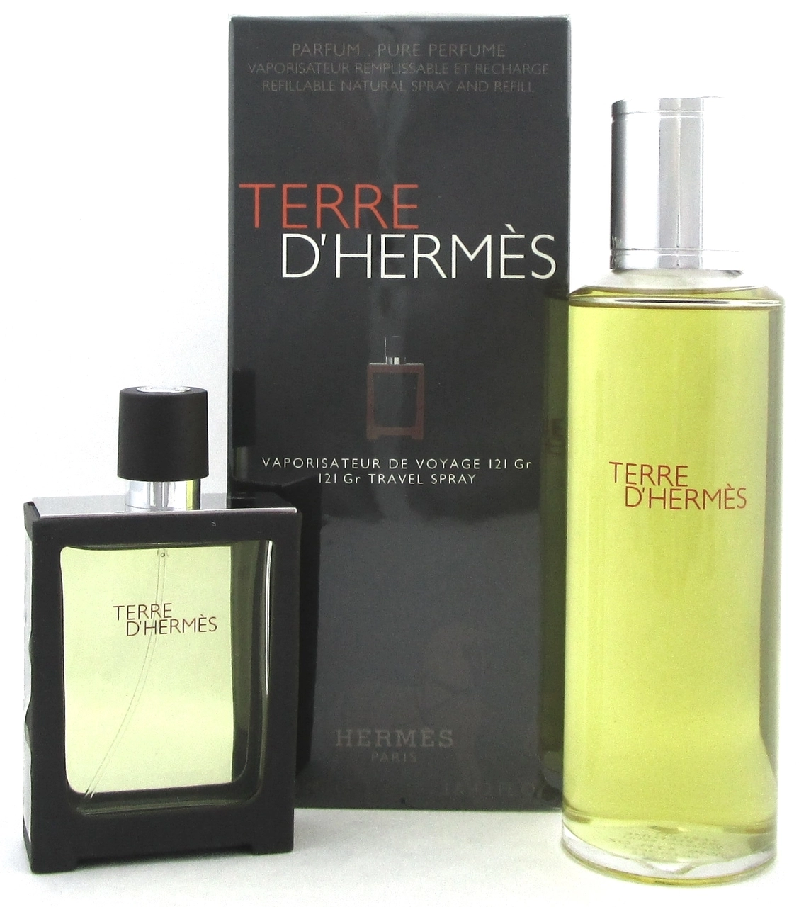 Item Code: HERMES- Terre D' Pure Parfum Refillable Spray 30ml/1oz + Refill 125ml/4.2oz 2pcs